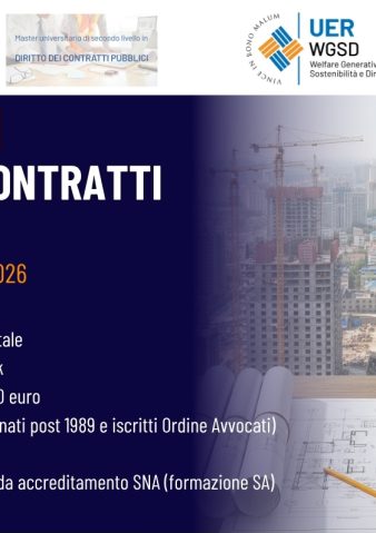 Il Centro di Ricerca “Welfare generativo, sostenibilità e diritti” dell’UER – Università Europea di Roma e la Società Italiana degli Avvocati Amministrativisti hanno organizzato, un Master Universitario di Secondo Livello in Diritto dei Contratti pubblici.